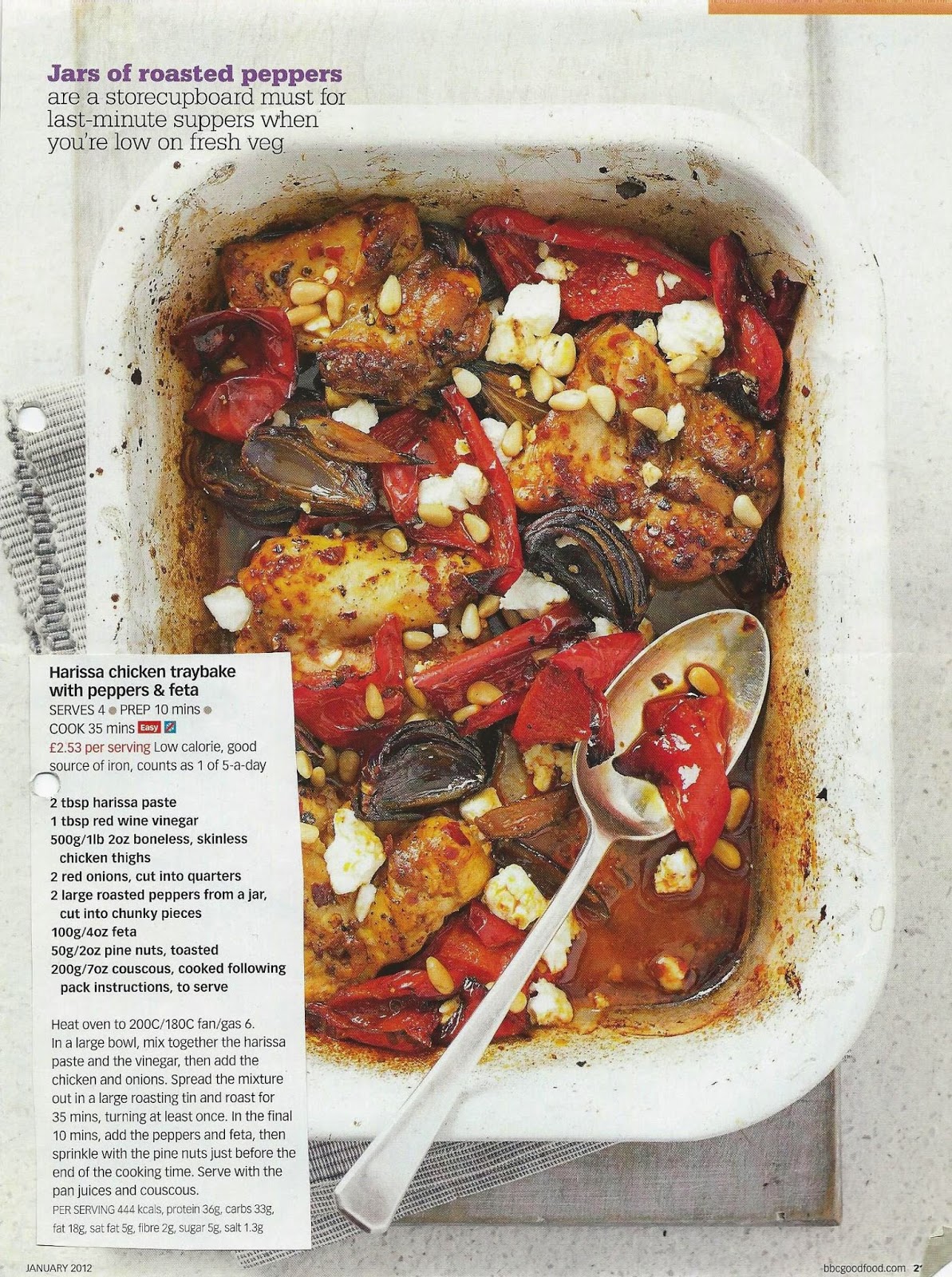 Dinner, 2/5/15: Harissa Chicken Traybake with Peppers and Feta